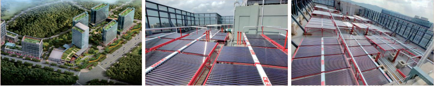 系統(tǒng)概述:安裝真空管集熱器9600管,集熱面積1248㎡,系統(tǒng)配置400匹空氣源熱泵輔助系統(tǒng)運(yùn)行